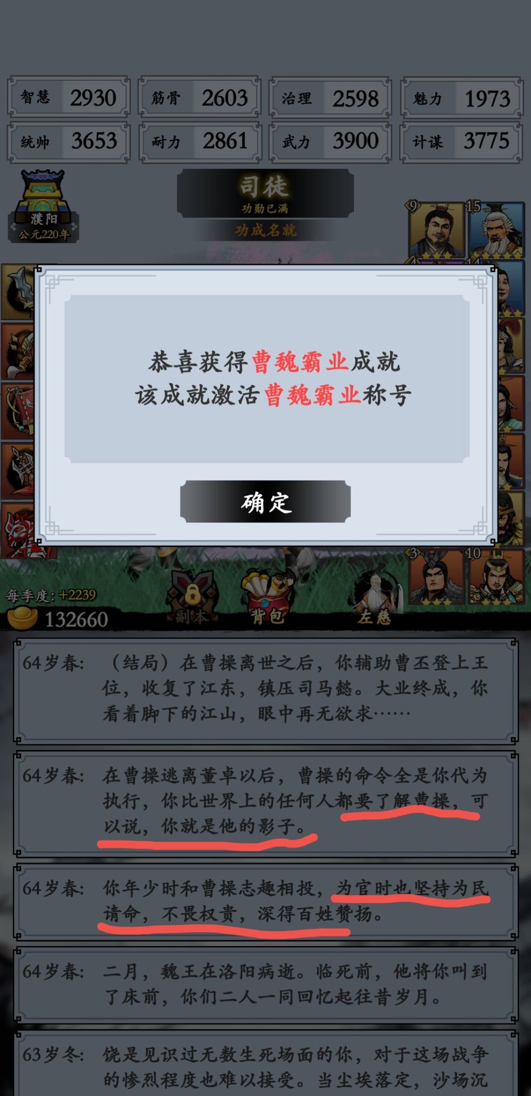 毕业了 全成就解锁 刷了两个小时把最后一个曹魏霸业刷出来了 想解锁曹魏霸业的可以来参考一下