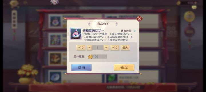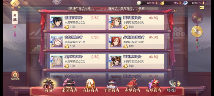 第二天再花4000元宝分别买两个魂将的20碎片。