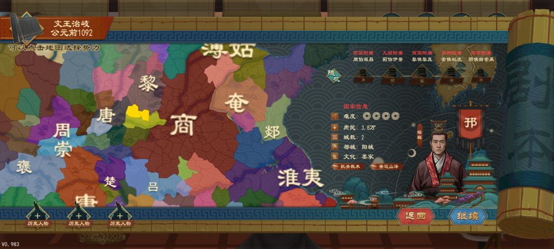 另外比较重要的一点邘国不管是商还是周都是候爵的,而且是铁打不动的那种,也都是有机会继承商或者周的。但游戏里却是伯爵然后开局就被削成子爵,这让我有点难受。