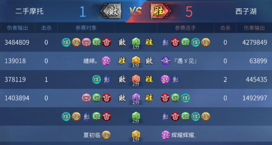 而在随后,西子湖战队实现了伤害的反超并一直保持优势直到比赛结束,获得了第一局团队赛的胜利。
