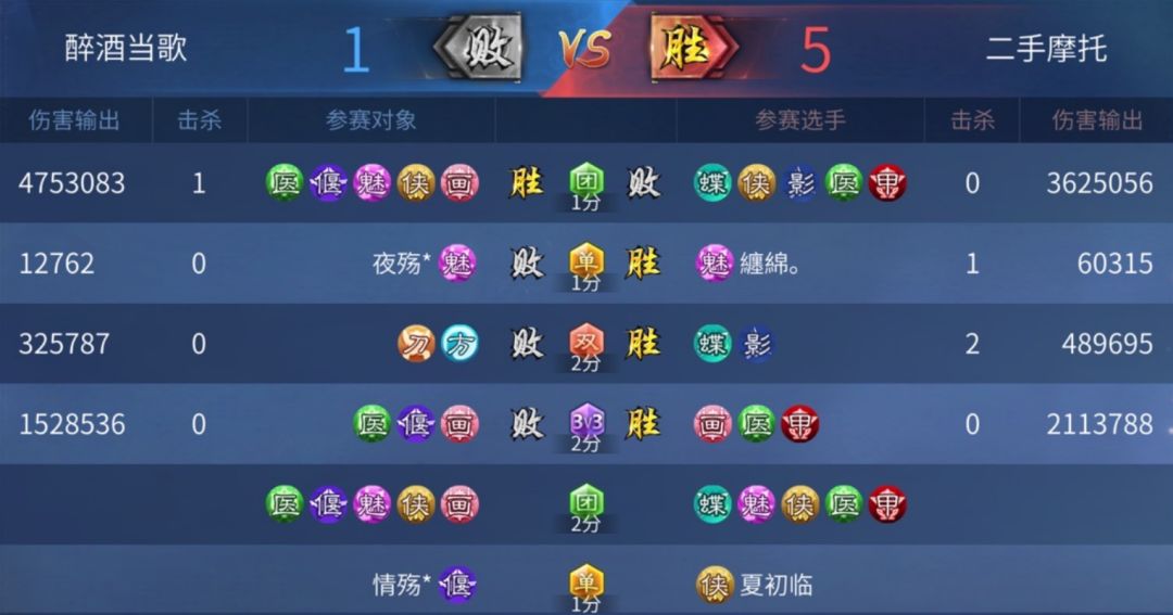 在本次全新出现的双人赛中,醉酒当歌战队派出了刀客与方士的组合,而二手摩托战队派出了影灵与蝶客的组合,最终二手摩托战队成功收割,拿下本局的胜利。
