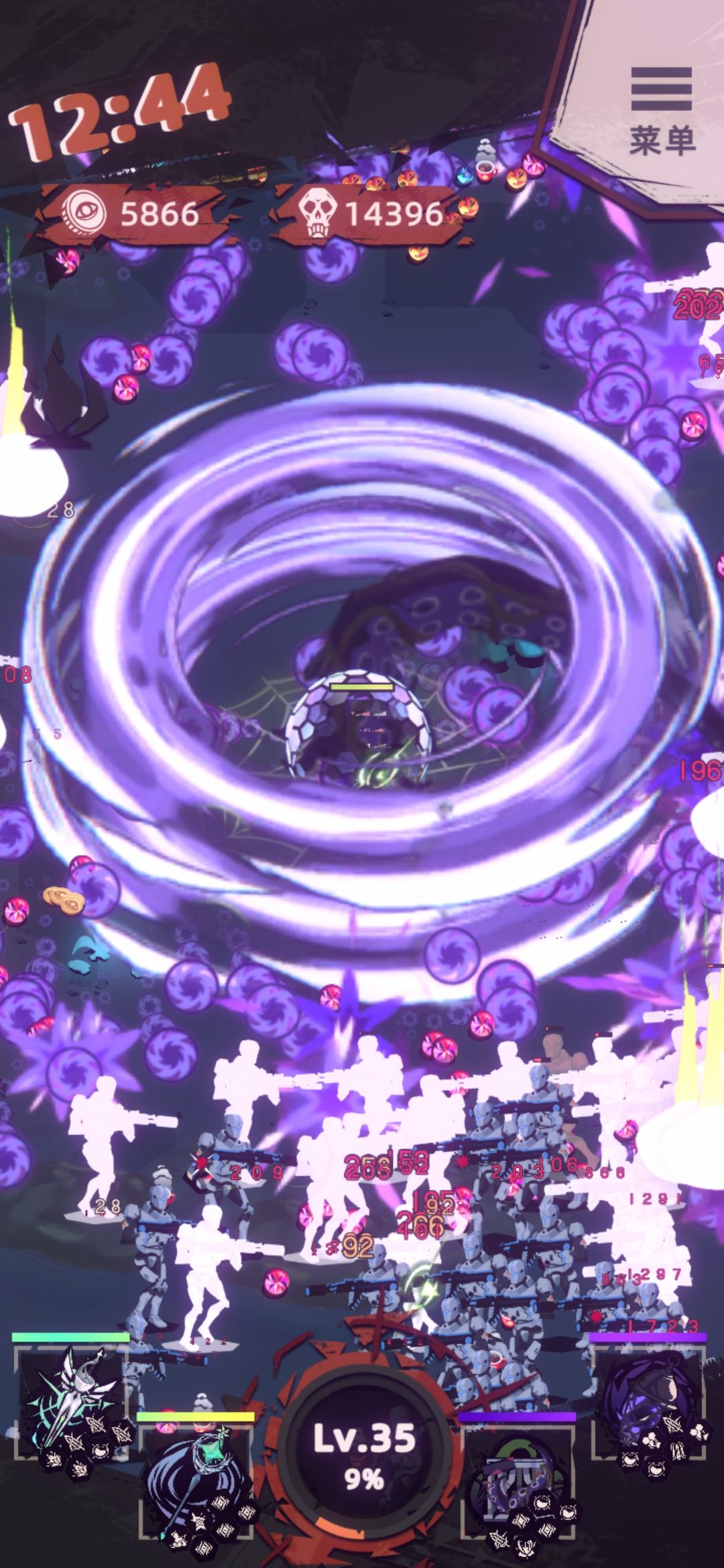 紫色触手,三个冷却,一个容易受伤,两个变大。冷却变大随便调整。