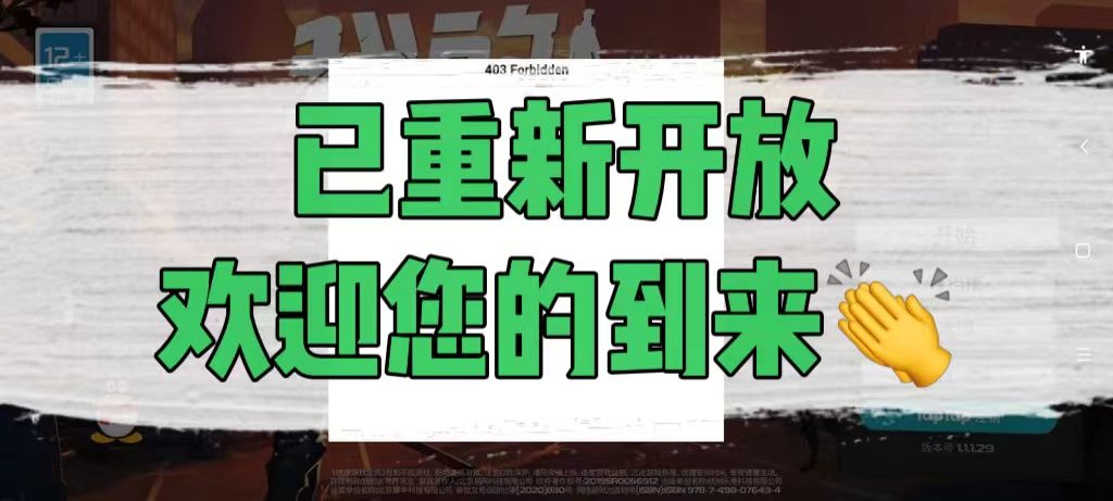已于12月7日零点重新开启求生通道,此前遇到下载游戏后白框弹屏/403/等提示情况,请关闭清除缓存后,重新打开游戏,即可进行实名认证,进入游戏。