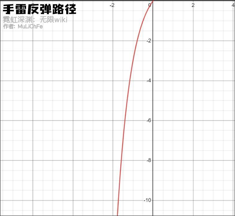 以肉眼观察可以发现手雷在 y=-3 时,x 值约等于- 1。且通过实践发现 x 值不超过-2,由此判断出函数在 x 等于-2 处拥有渐进线。代入数值推算出手雷反弹路径