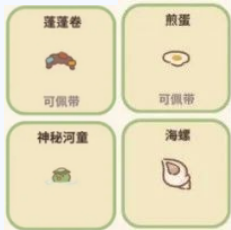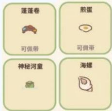 蓬蓬卷—要随时保持发型哦!获得后可以得到10颗星,2021年周年庆完成活动所得、煎蛋—因为天气太热都熟啦!获得后可以得到10颗星,七月的兑换码获取、神秘河童—总是神出鬼没,不知道下一秒会从哪冒出,获得后可以得到25颗星,需要从扭蛋机里获取、海螺—嘘!有大海的声音,获得后可以得到15颗星,需要从扭蛋机里获取。