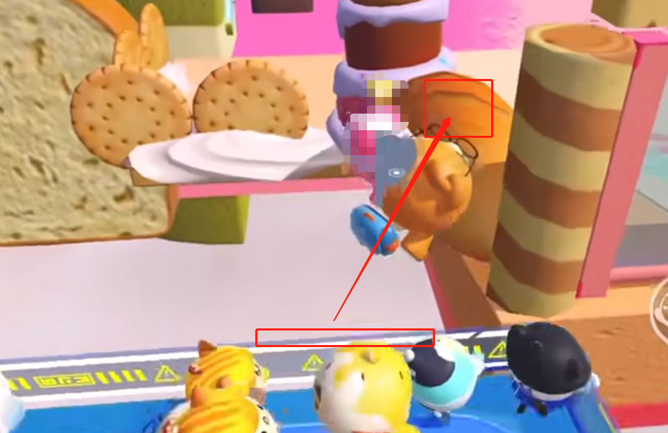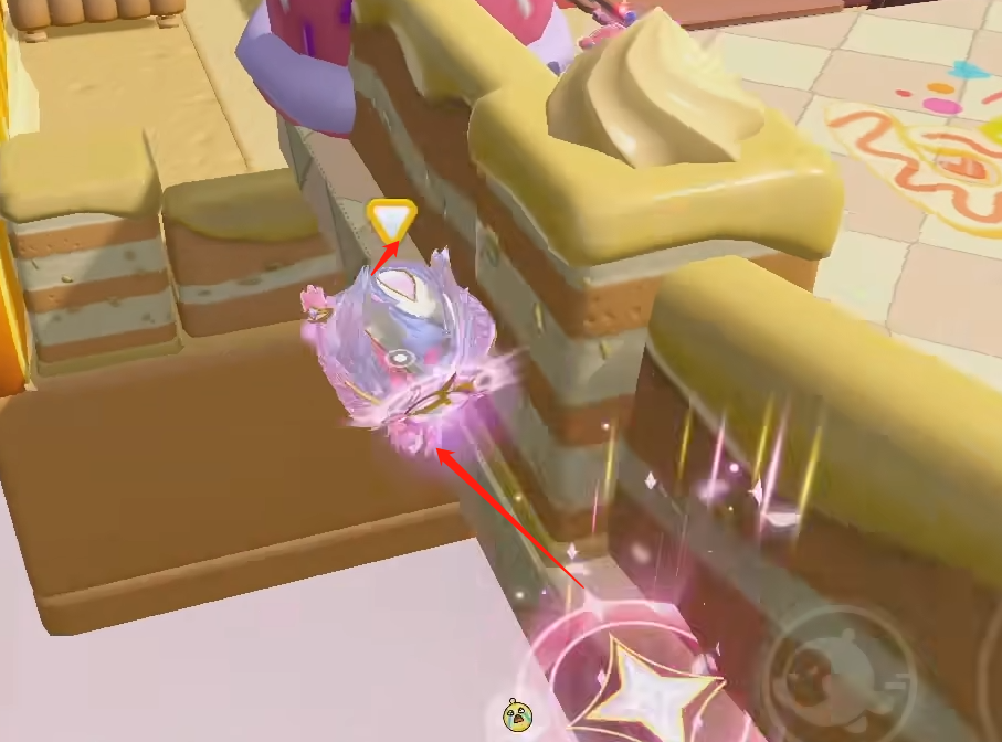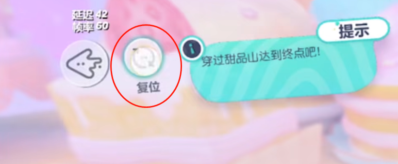 二、在边缘处往前走两步即可触发存档点,可以翻越蛋糕护栏到达主赛道。不过我更推荐直接点【复位】恢复到主赛场。
