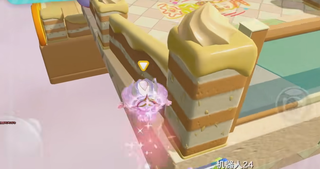 一、同样的在比赛开始前跳到护栏,然后等靠近草莓蛋糕柱时趁机跳到边缘
