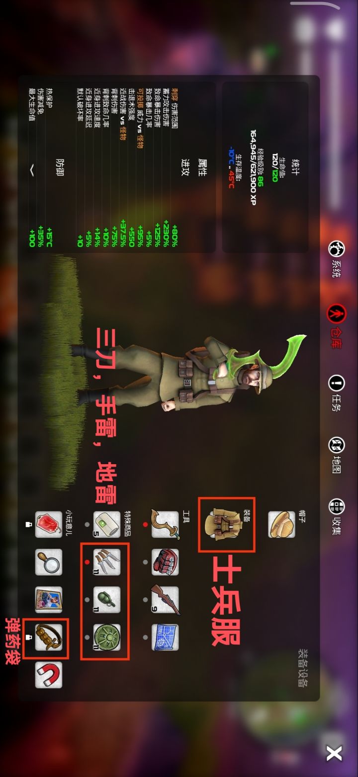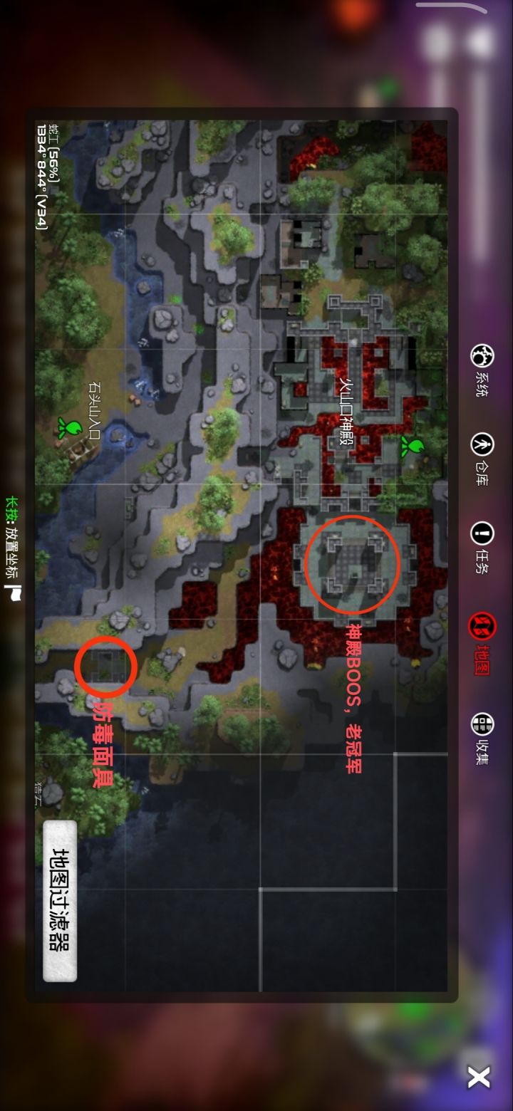 防毒面具,详细位置在蛇工地图火山神殿口,小心神殿口古墓守卫,这种怪的近身攻速极快,闪避速度极快,切记没有一定血量不要与其打近战,清理掉路途中的古墓守卫后,还需要击败BOOS,老冠军,老冠军跟古墓守卫一样,不可近战,有一定的血量也不要跟他近战,因为你只能耐得住他两刀,两刀你人就没了,用三刀,手雷,地雷,跟他打远程,我的是毕业了,你们可以忽略士兵服跟弹药袋,老冠军很脆,三刀四发,手雷四发,迎面在一发地雷,可以搞死老冠军,之后就可以获得防毒面具