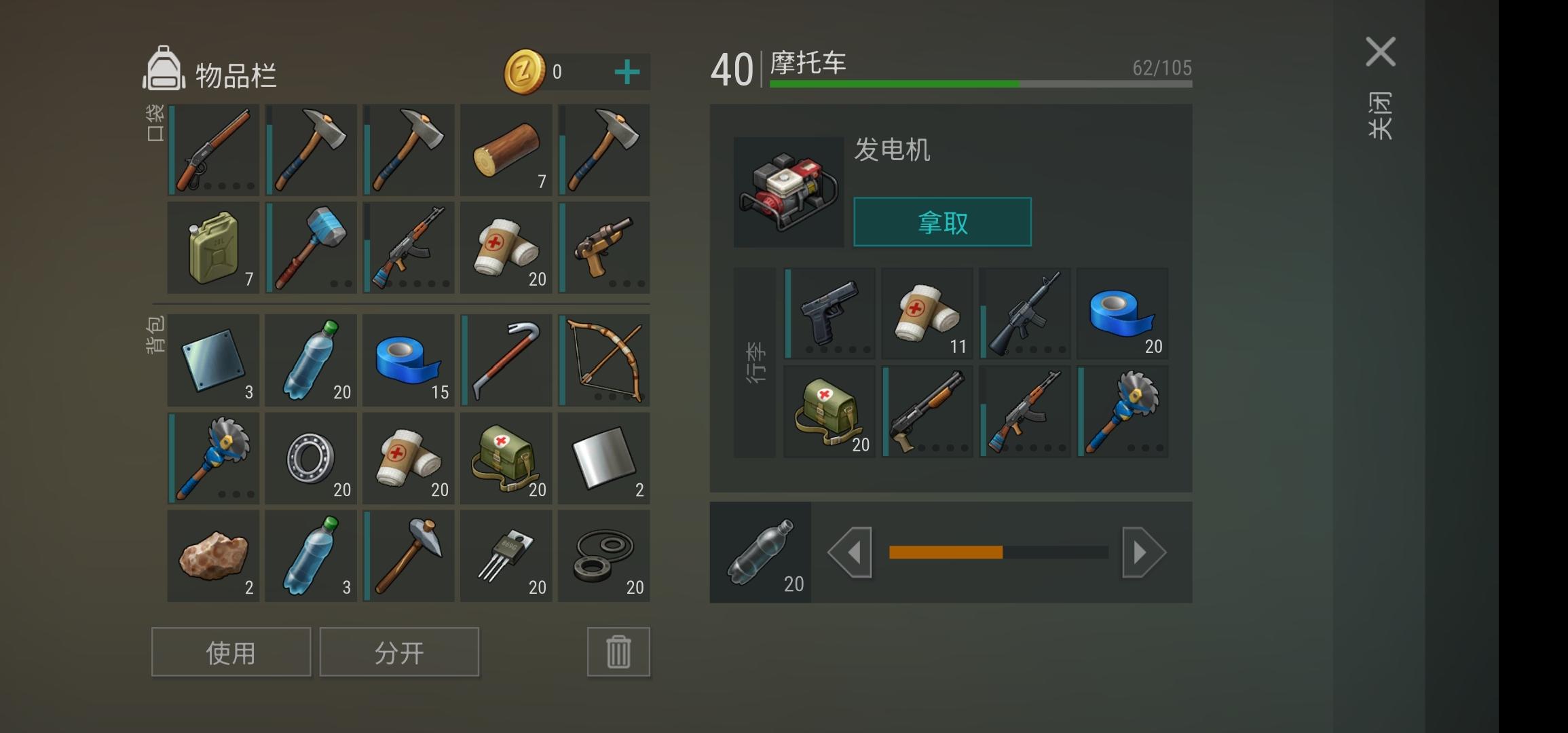 大退出来后,右边这里,也是一样,发电机摆好,周围的杂物捡一下
