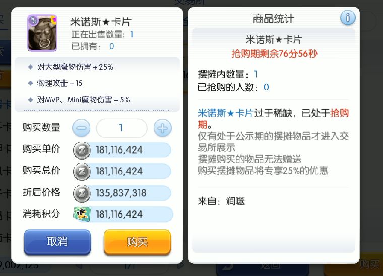 当然,你也可以直接用你自己小号摆摊卖半价自己想要的东西,这样就不用购买别人店铺了,一般好多人购买的是半价的紫色材料(光粒,羽毛这些)或者是半价的属性石头(风,地,火石头这些),再或者是神之金属,贵价头饰等等。