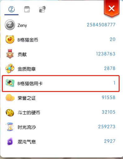 物品栏里面有一个B格猫信用卡,这里可以显示自己充值了多少钱(每个月就会清空额度,所以都要及时使用)
