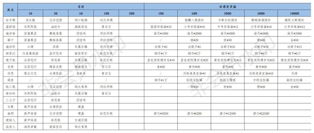 再就是【出行】带上相应的食物和酒,就能出行去对应地点了,怎么看呢?侠道,下面—图例—把显示门派喜好、材料啥都勾上!all,看不懂,有图案解释。