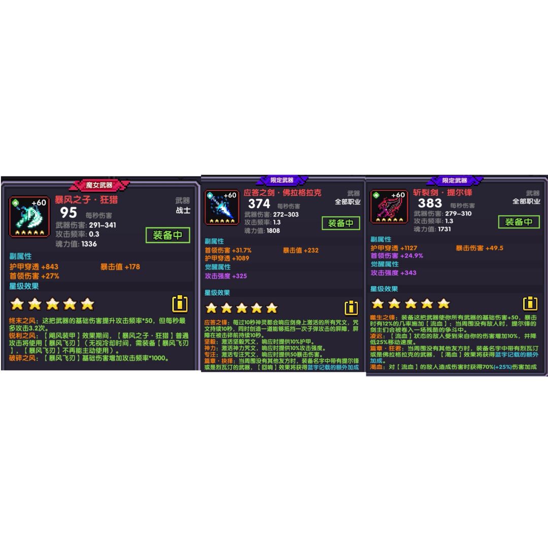 武器方面 魔女(主要伤害)+限定(辅助作用)+限定(辅助作用)