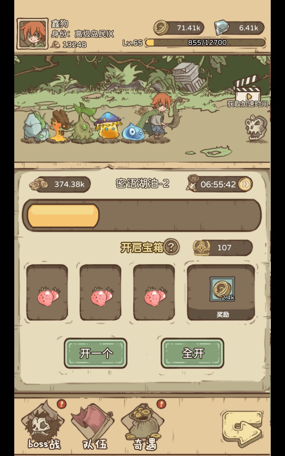奇遇只会出现在前三个小地图,第四个小地图开始没有。然后BOSS可以反复挑战直至打过为止,然后地图可以加速,可以加速本地图也可以加速全图,也可以结束探索,在前期开荒过程中,可以如下操作:只推1到3,然后退出来升级身份然后升级口粮上限,然后继续推图1到6,升级身份升级口粮上限,然后就可以直接推过全图了。注意:只有把口粮上限拉满的情况下才能推完全图(一般情况下前期口粮不足的情况下只能推图1到5,所以选择上述方式来刷口粮上限,达到最快效率推图)