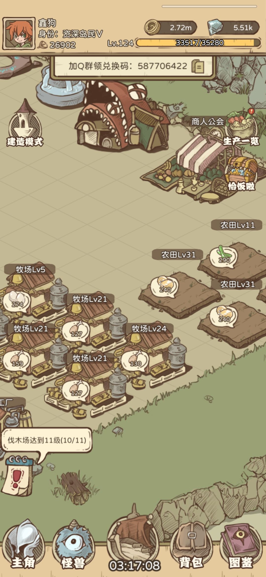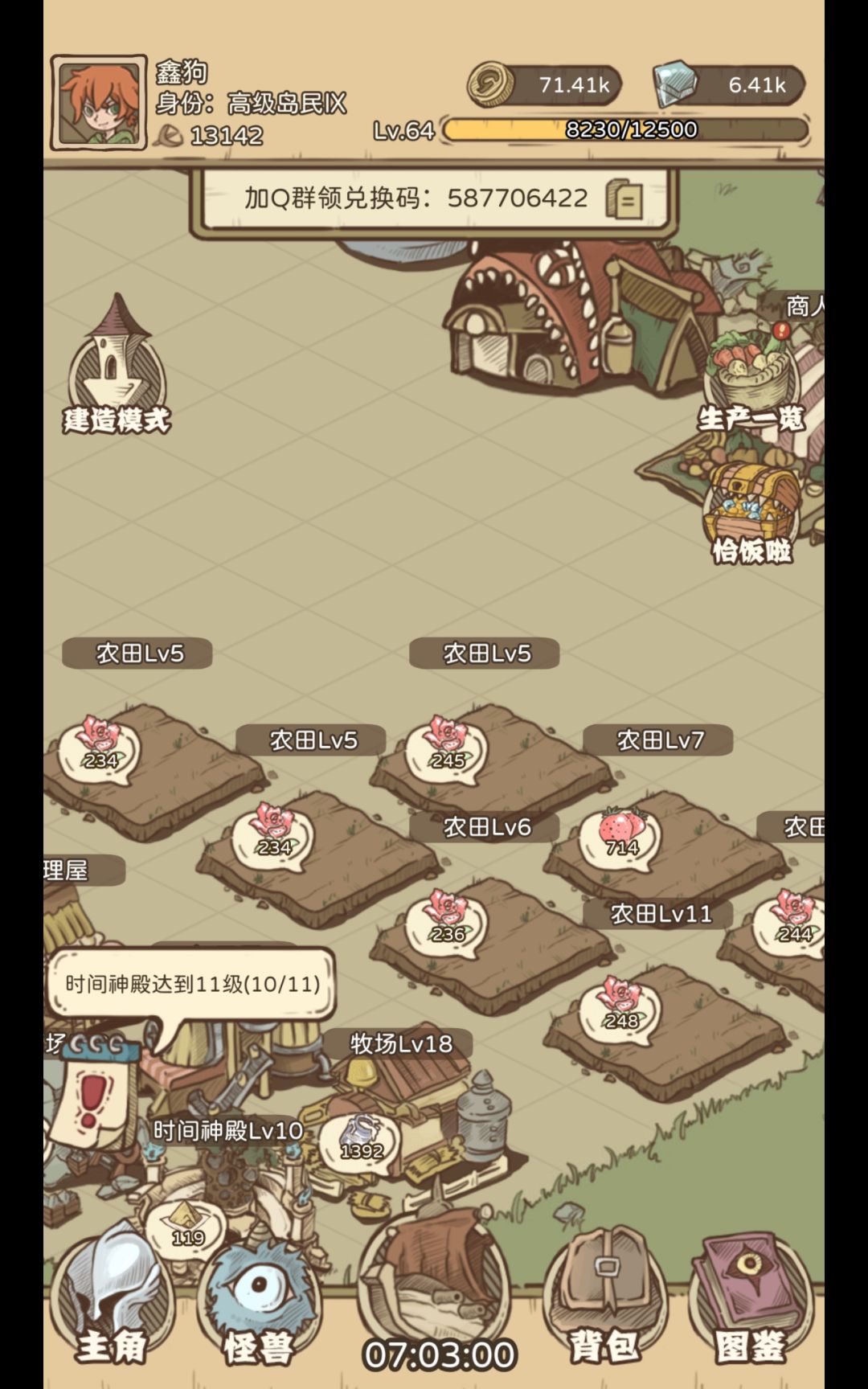 掌握了以上知识基本上前期顺风顺水,游戏内的东西每日4点重置,游戏主要还是挂机收菜为主,欢迎各位加入群聊和各位大佬一起讨论,群内还有奖励丰厚的兑换码。