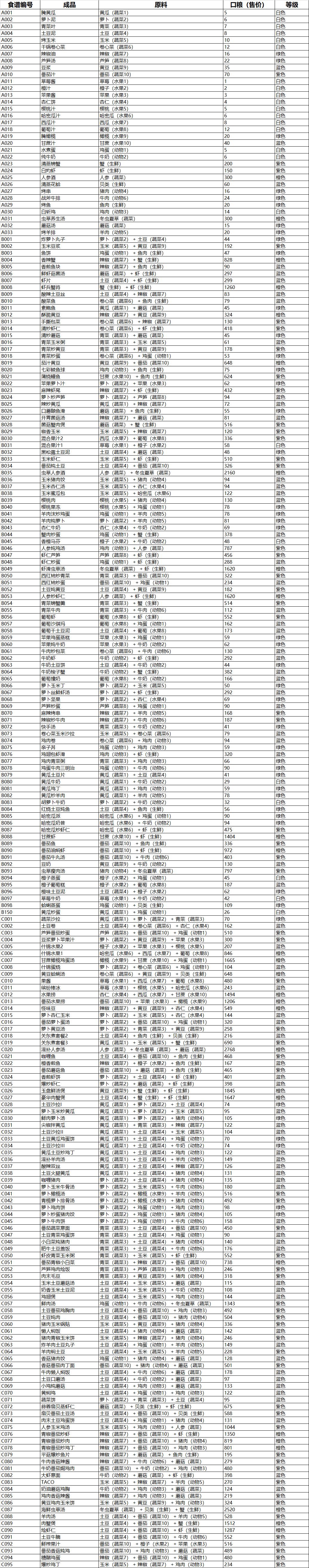 食谱大全(2023.7.4更新,100级以下全食谱,更新101农牧新食谱)
