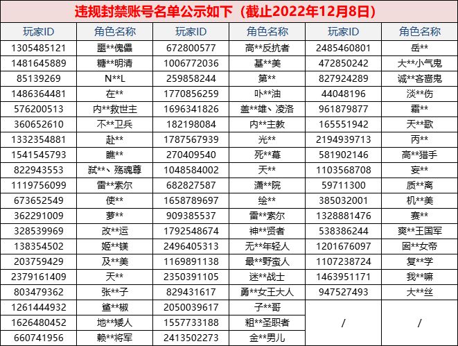 名单覆盖12月5日-12月8日期间的所有封禁账号