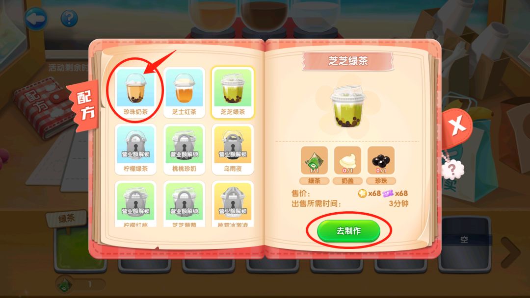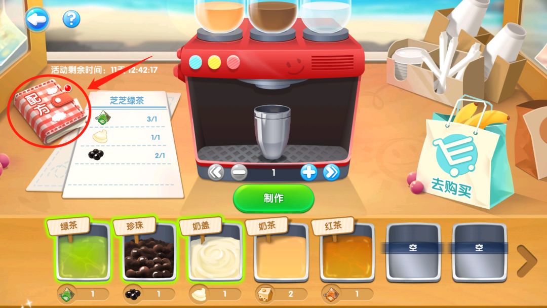 为了避免刚开业时的手忙脚乱,先来熟悉下制作台吧!泡泡还为馆长准备了奶茶配方,了解配方才能快速上手,试做一杯练练手吧!