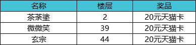 随机抽取3名正确参与活动的玩家,赠送20元天猫卡一份;