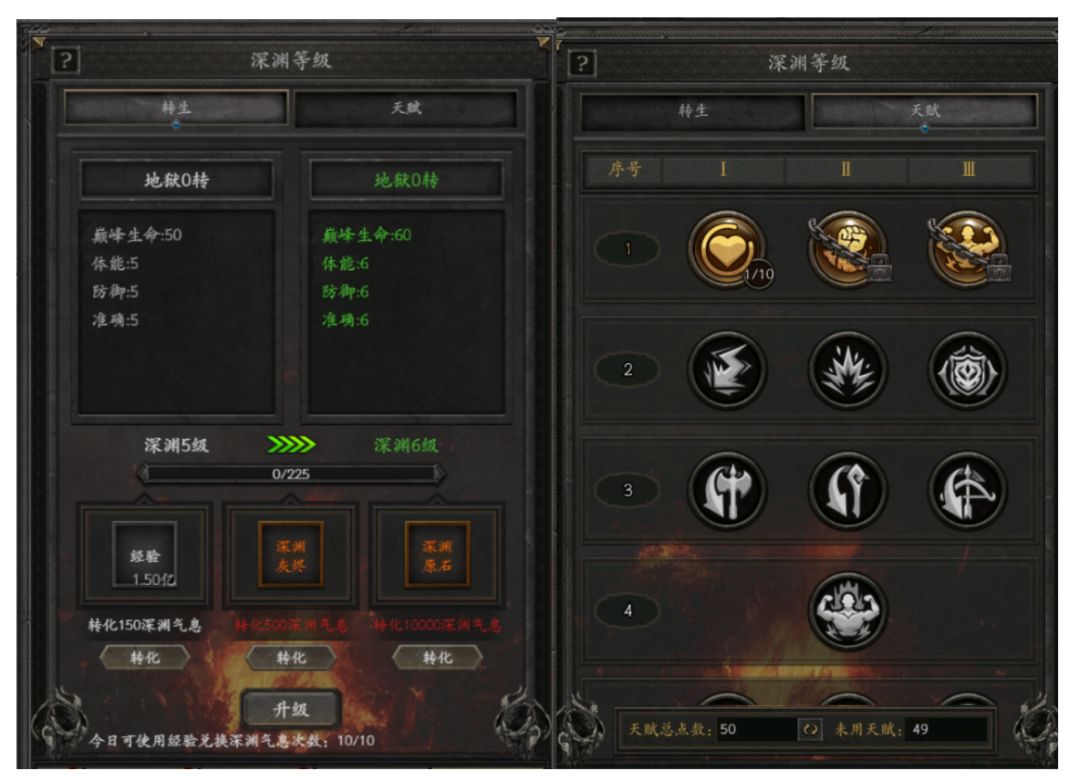 3、每提升1级深渊等级,将额外获得1点深渊天赋点,天赋点可以在【天赋】界面中点亮天赋。