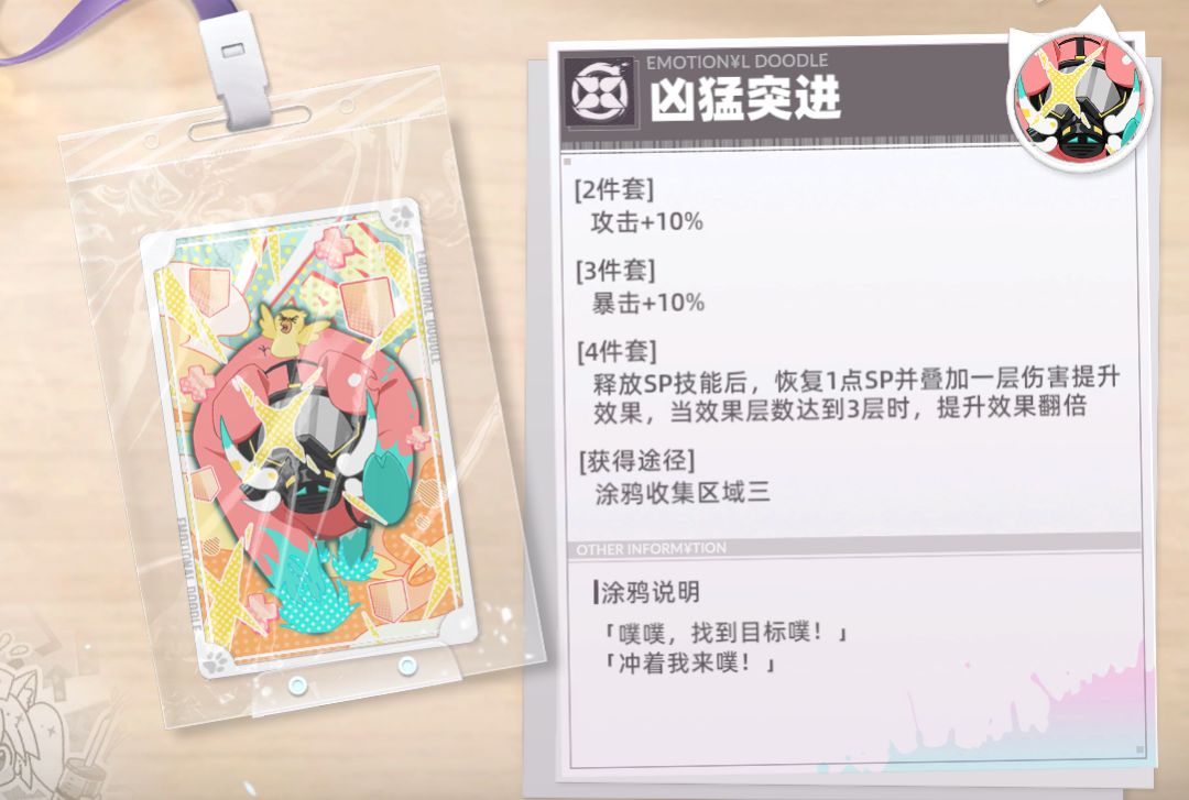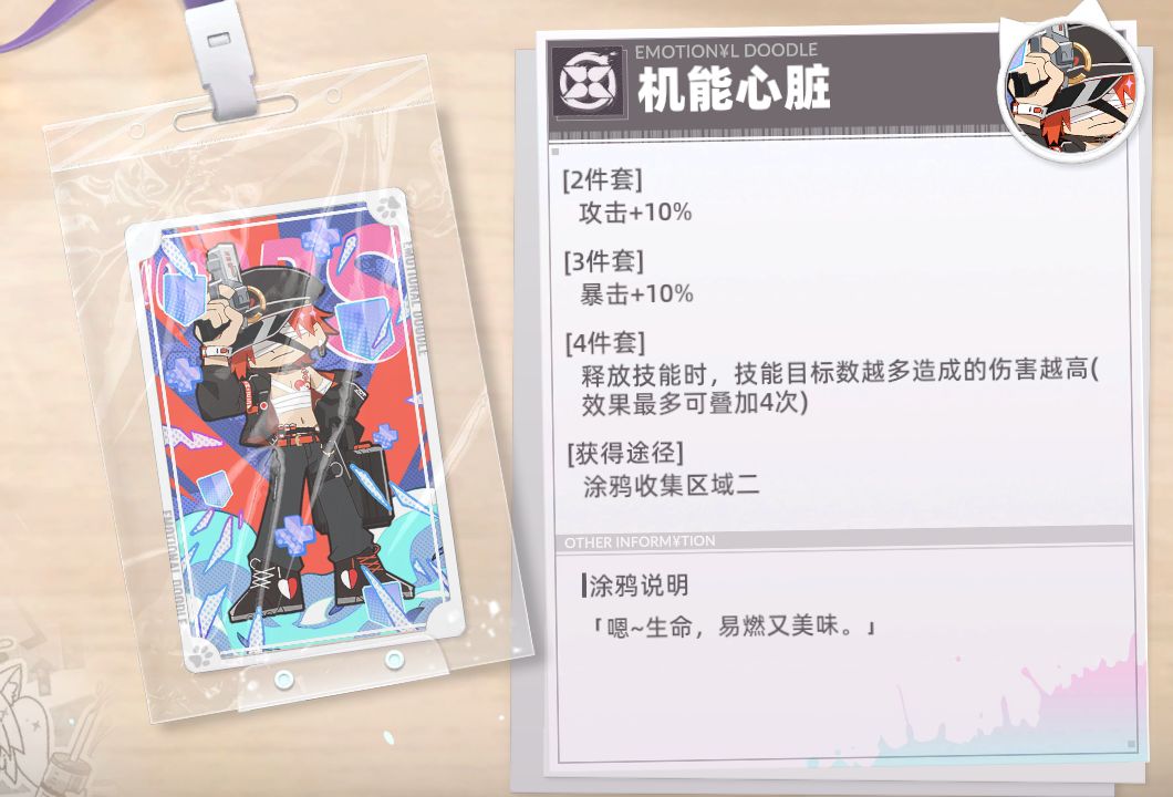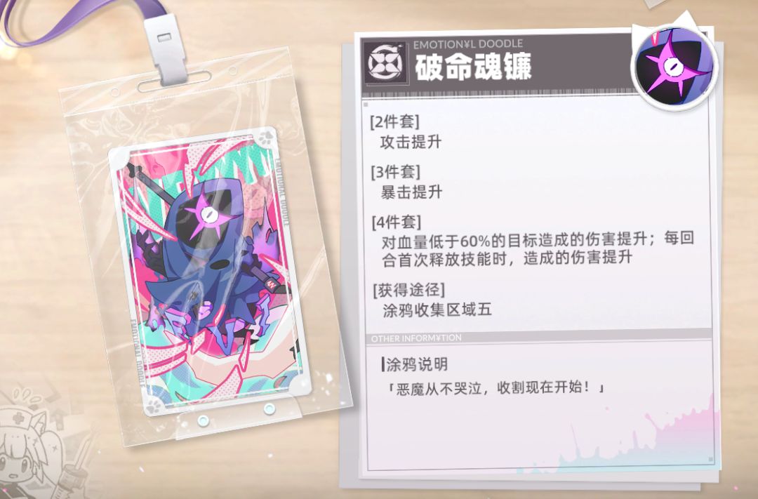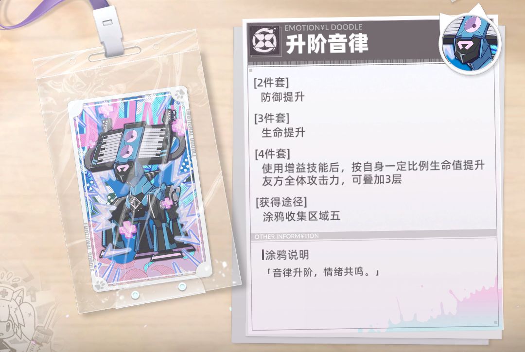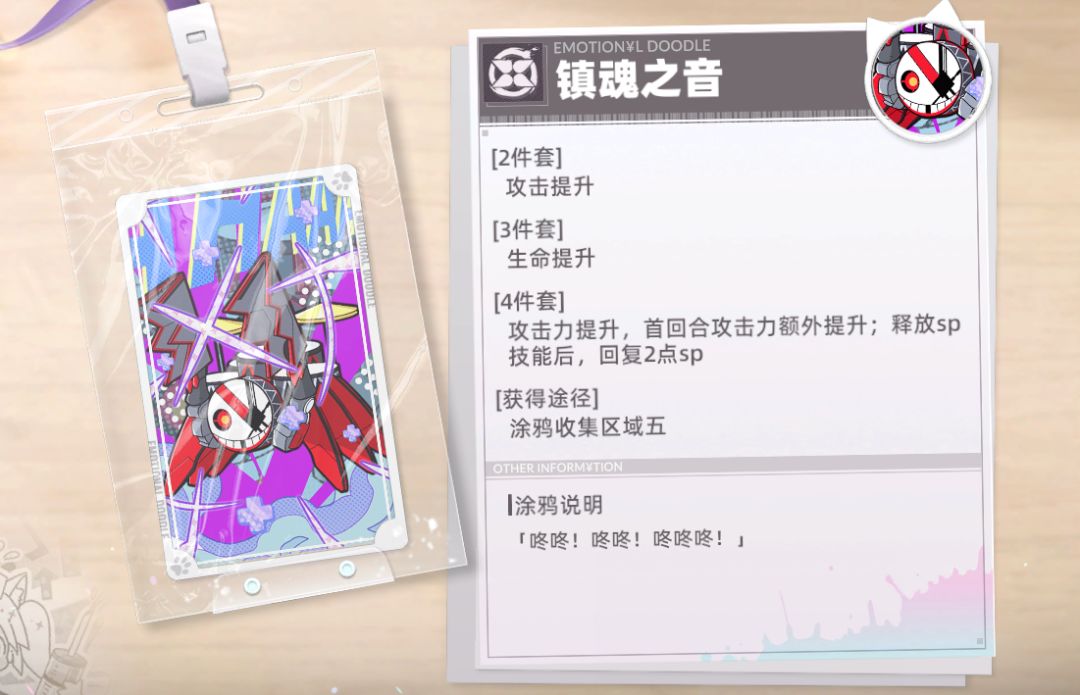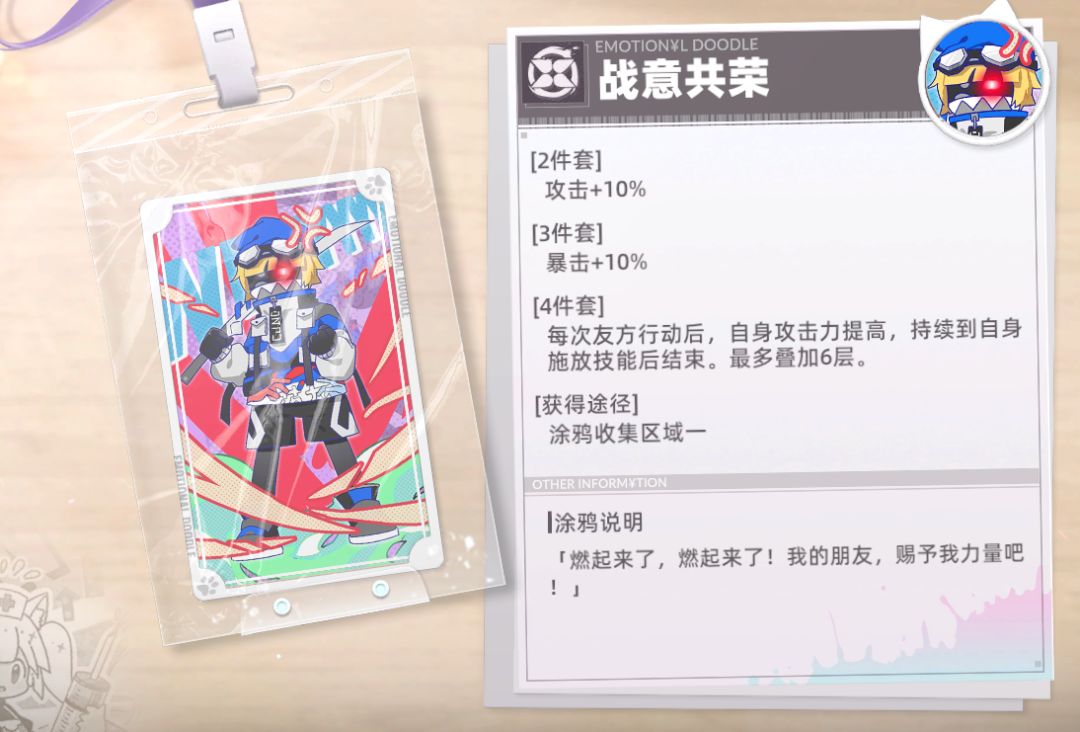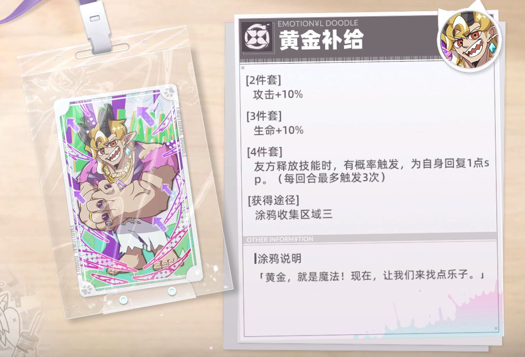涂鸦讲解:非常适合辅助角色,特别是生命值上限高的角色,可以给队伍提供不俗的攻击力加成。