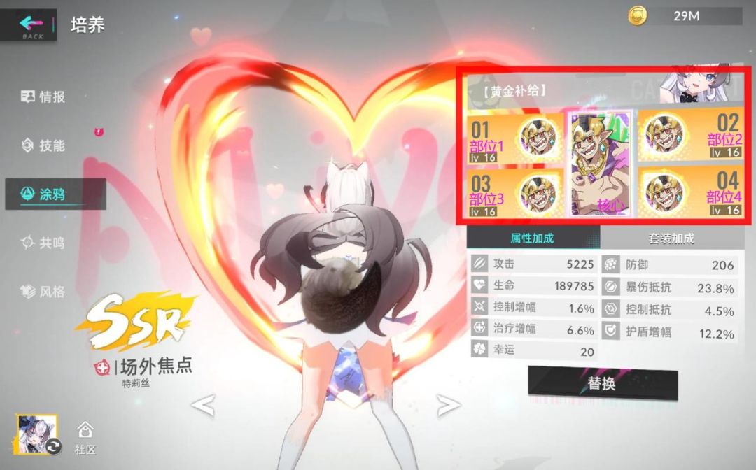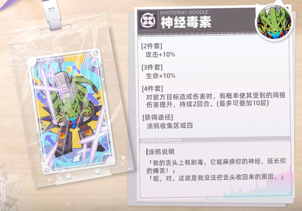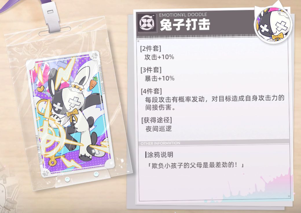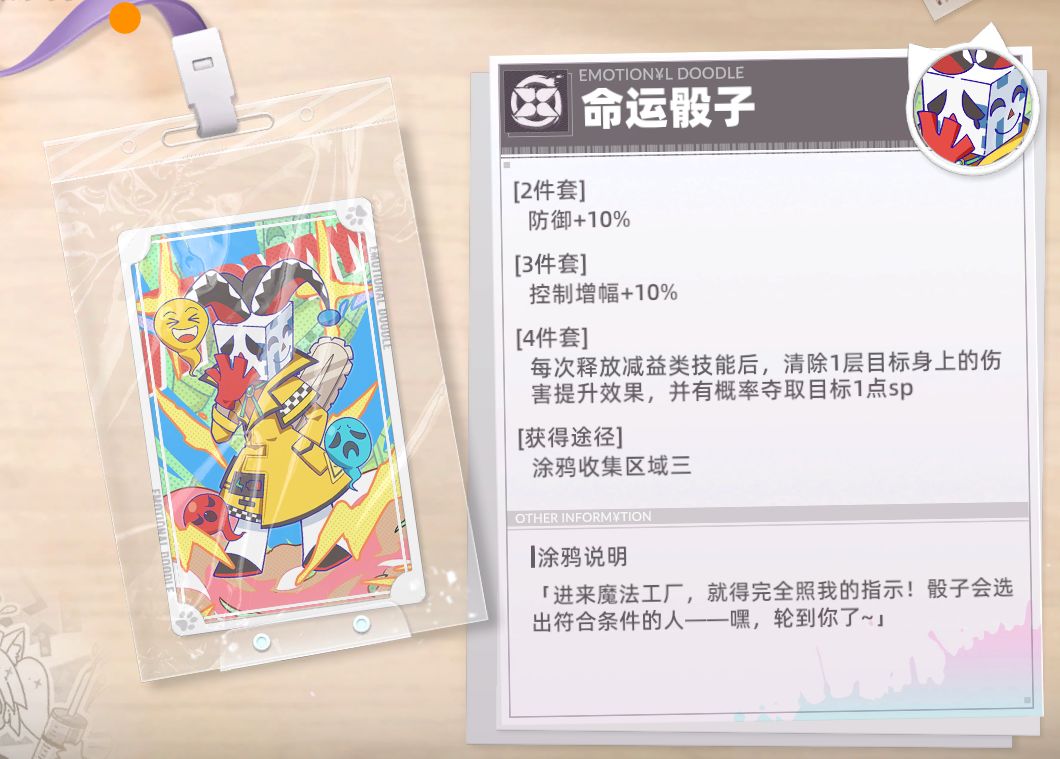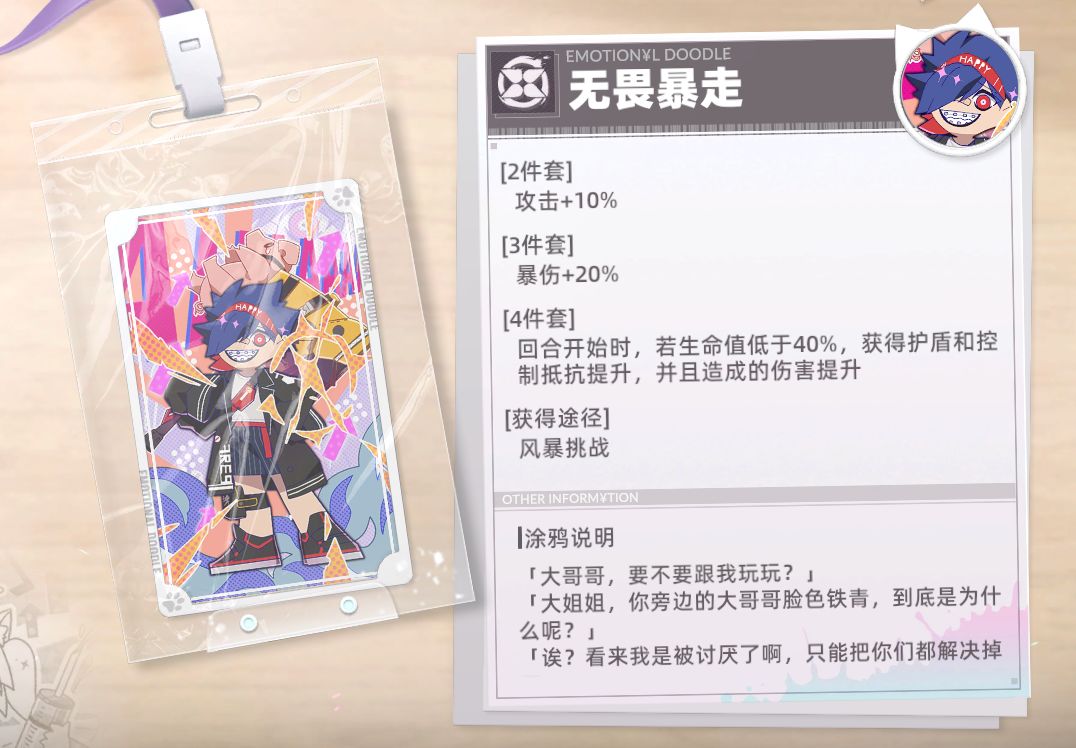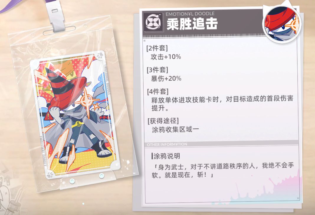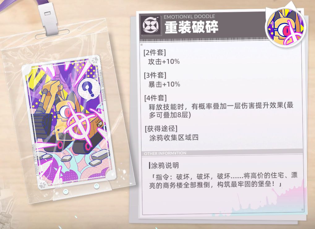 涂鸦讲解:非常适合辅助角色,特别是生命值上限高的角色,可以给队伍提供不俗的攻击力加成。