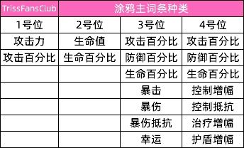 涂鸦的主词条相对比较好的理解,每个位置都有固定的几种词条。