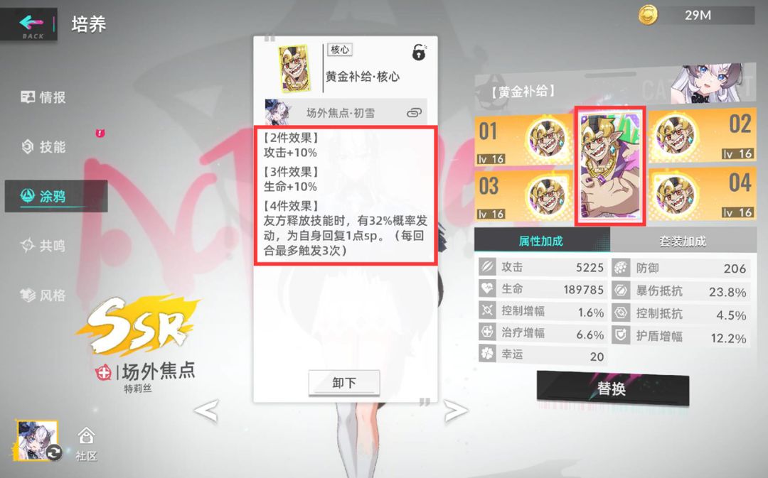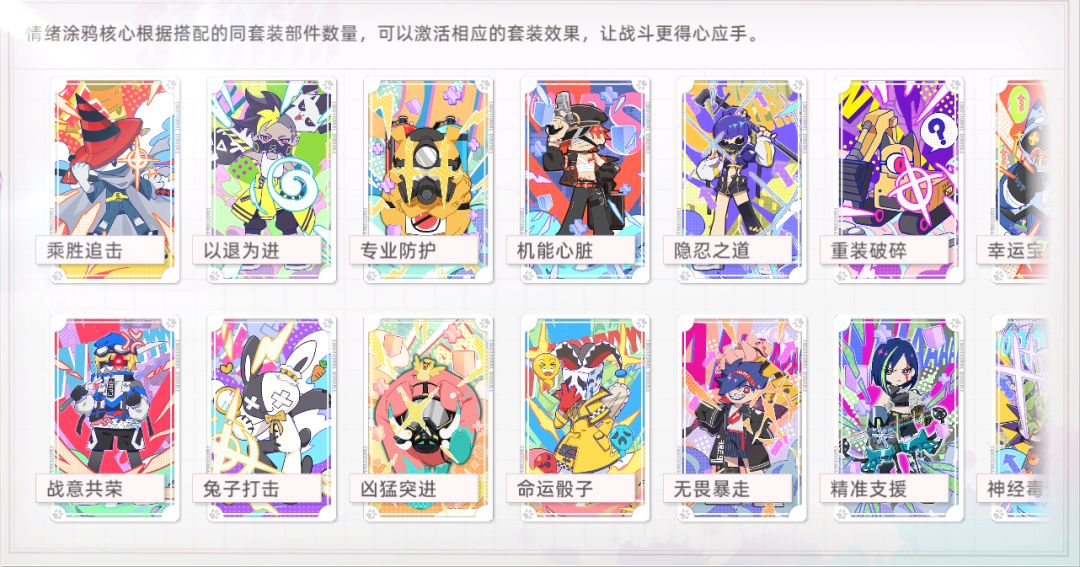涂鸦核心拥有品级,不同品级的套装效果有着略微的差距,除了触发概率类的,效果差距基本上在一两个词条可以弥补的范围内,一般情况下蓝色就能用。