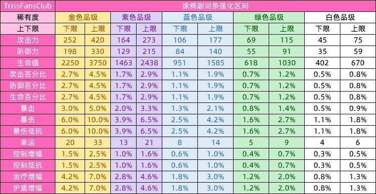 经群友们协助,我们共计约统计了约1万个左右的涂鸦得出的副词条数据,大致范围如下;如有错误欢迎在评论区指正。