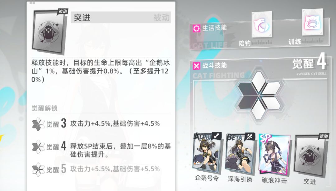 效果介绍:友方行动后,自身攻击力提升,最多叠加6层。自身释放技能后,效果消失。