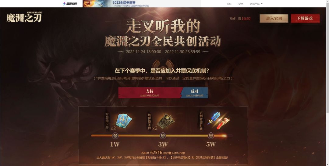 对于井票保底机制,共有61030位封魔人表示支持,1486位封魔人表示反对,你们的强烈心声我们已收到!