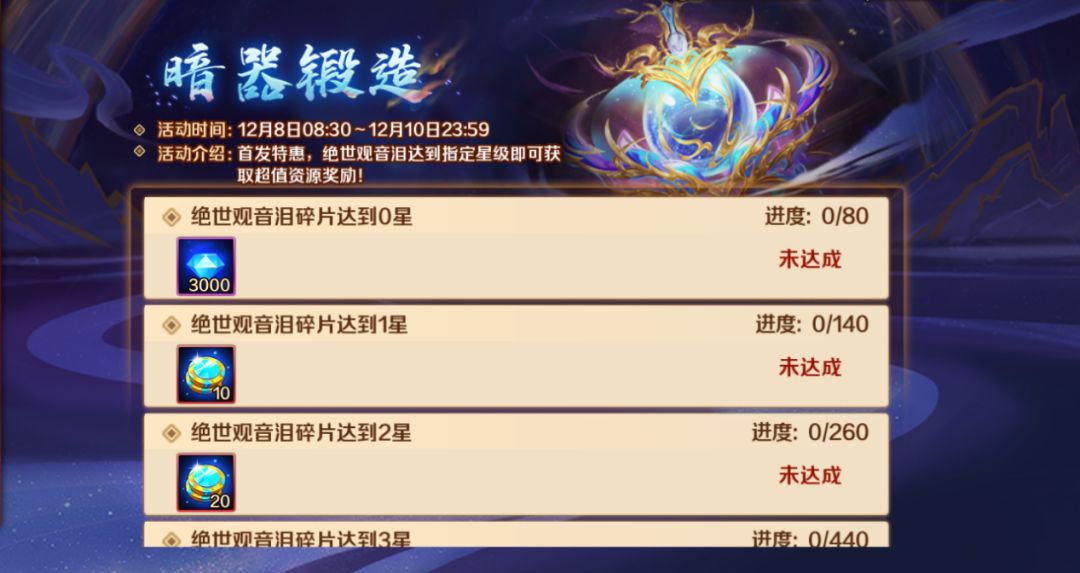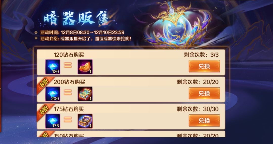“暗器锻造”活动中新暗器升星即可获赠欢乐币、钻石资源;