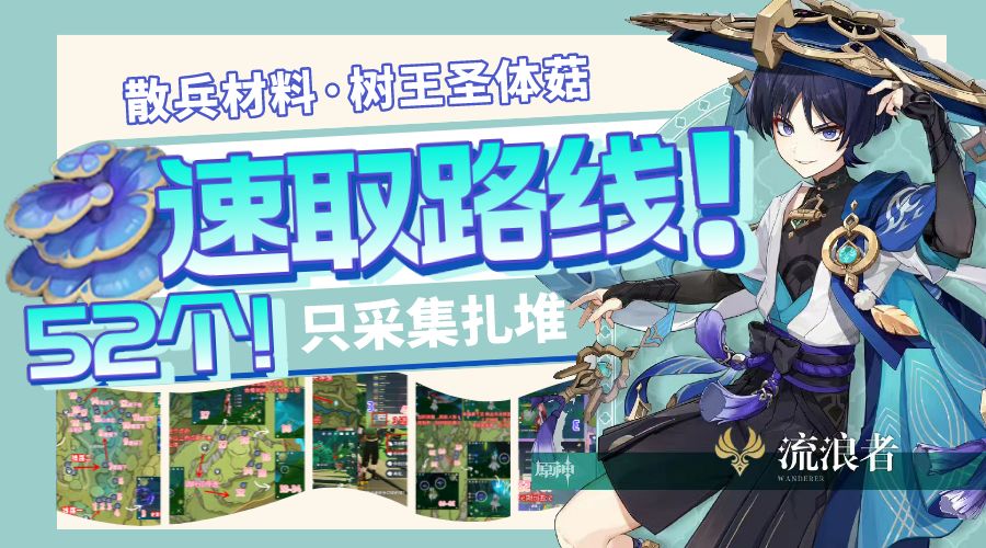 【V3.3攻略】#角色攻略#散兵材料|树王圣体菇 52个速取路线!只采扎堆的!