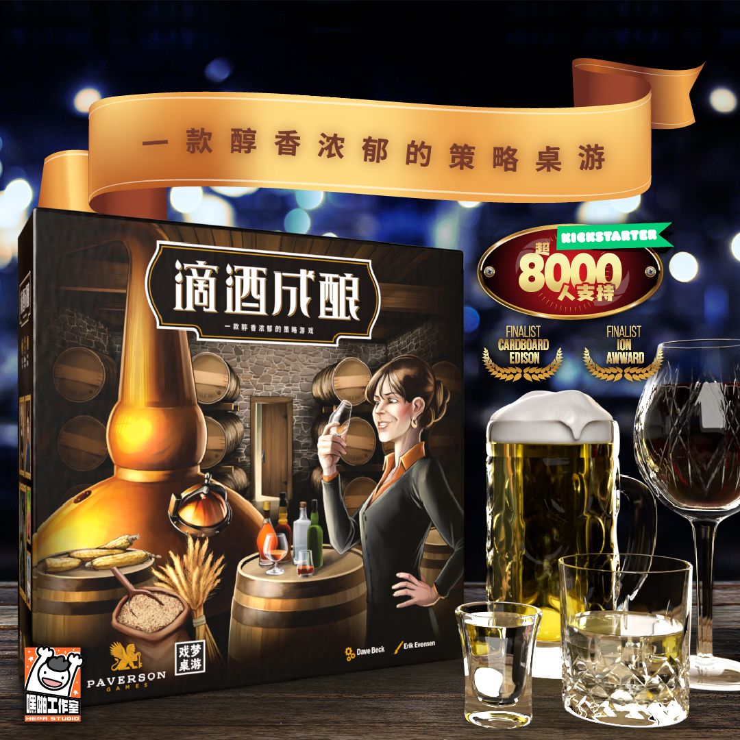 《滴酒成酿》在海外超过8000多人购买,口碑爆表,本次由国内的桌游出版社——嘿啪工作室带来了它们的简体中文版,正在摩点App预售,近500张卡牌、超多升级解锁、以及和KS英文版全球同步发货,价格更好,欢迎关注!