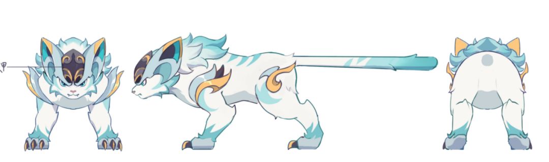 谛听的整体色调采用了蓝绿色,更加贴合大自然,还寓意着希望、安全和生机,再辅以金色点缀,一只帅气的通灵神兽便跃然于纸上!