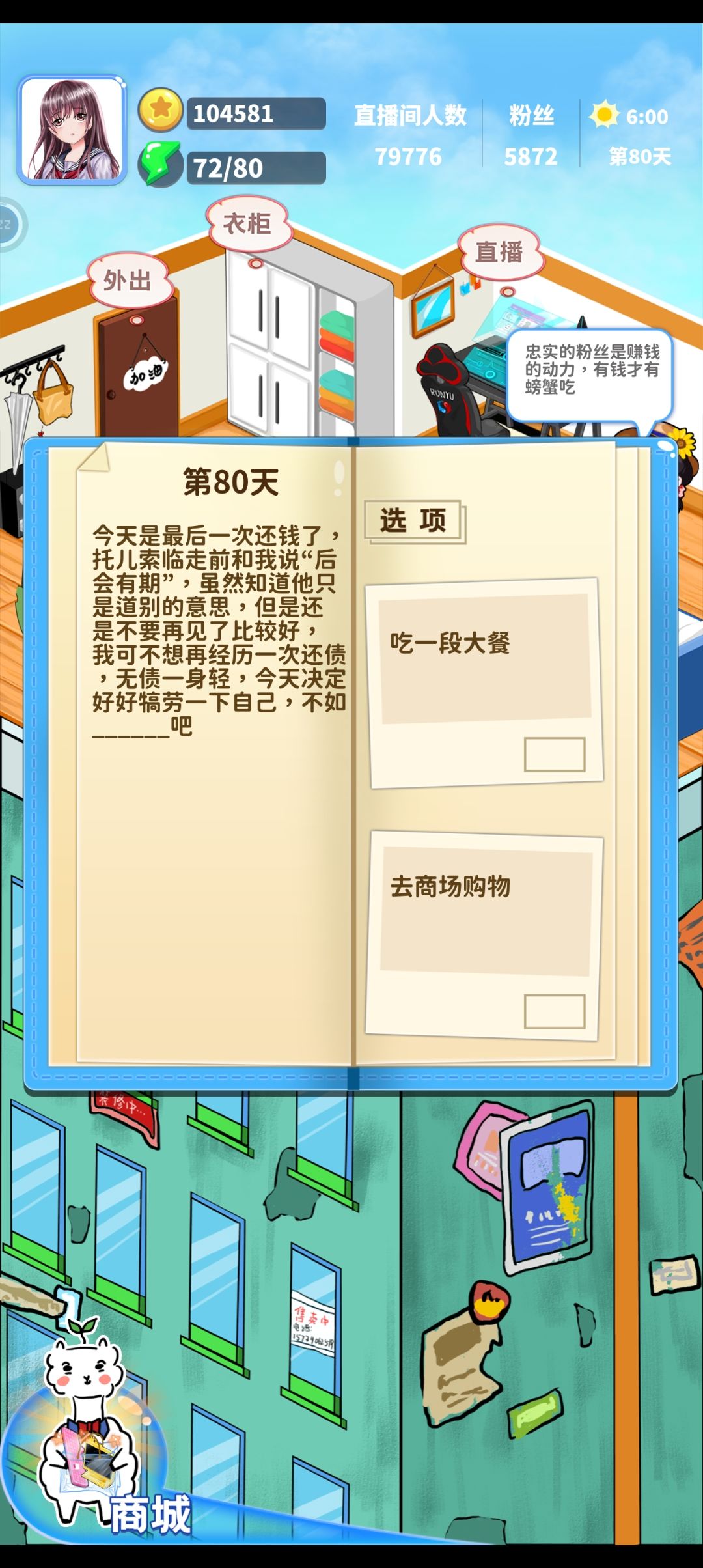回想一下前期每个月房租1500,中期还款2w,然后招聘了个经理每个月2000,后面还钱5w,再还钱7w。