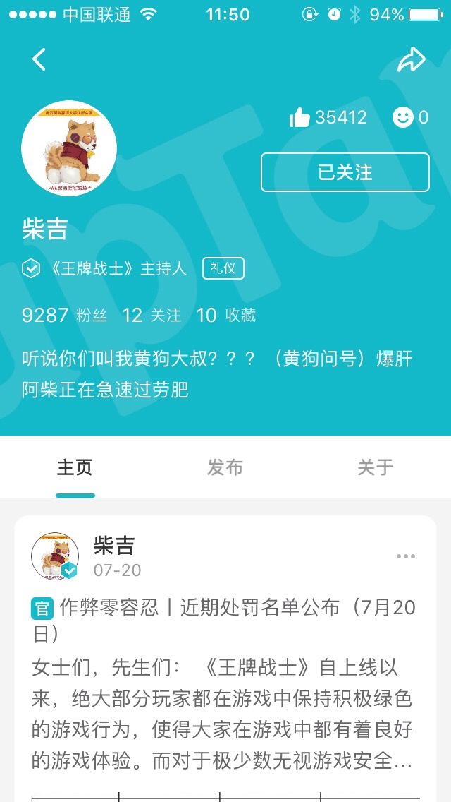 不会吧,不会吧,柴吉尽然没关注王牌战士,而是关注了一人之下和战歌竞技场!!!