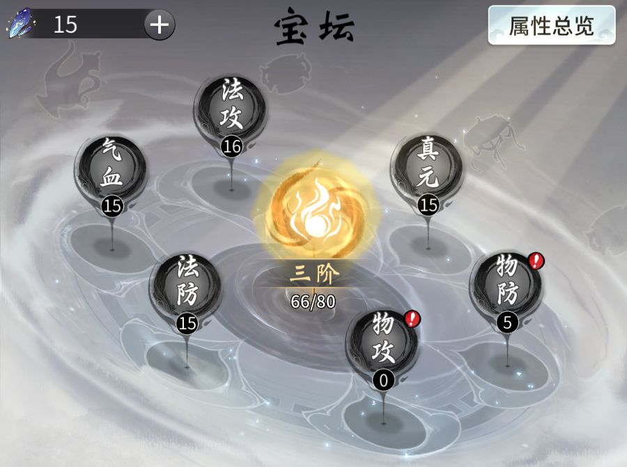 仙友可选择气血、真元、物攻、法攻等坛位进行培养升级。根据所升级的坛位类型,增加同类型所有古宝的被动属性。