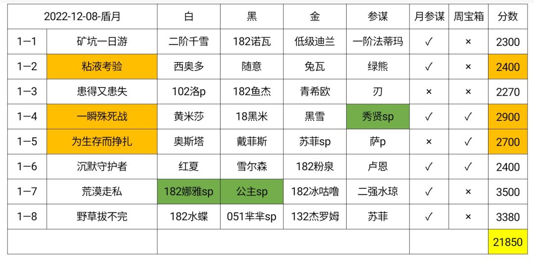 月参谋,卢恩动粉泉(一次两次都可以),白位可以换刃p或者萨p)