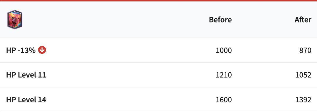 虽然他没有凤凰受欢迎——估计是因为只有6500杯以上的玩家才能解锁武僧——但是武僧还是有点过于强了,大家都等着一个削弱。这次调整后,他的圣水消耗增加1(从4滴到5滴)。未来的武僧贵了一费,不过1费反弹一切投掷物的技能还是可圈可点的。