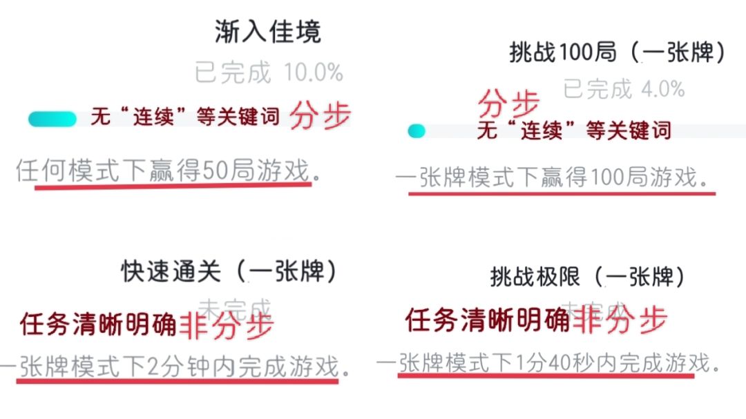 也观察其他游戏分步成就,可以发现,都是以百分数和进度条显示玩家已完成多少,并不会精确显示数量或次数,所以呢这也需要玩家自己摸索,其实从另一种角度来说,这也是提升玩家反复游玩的兴趣或次数