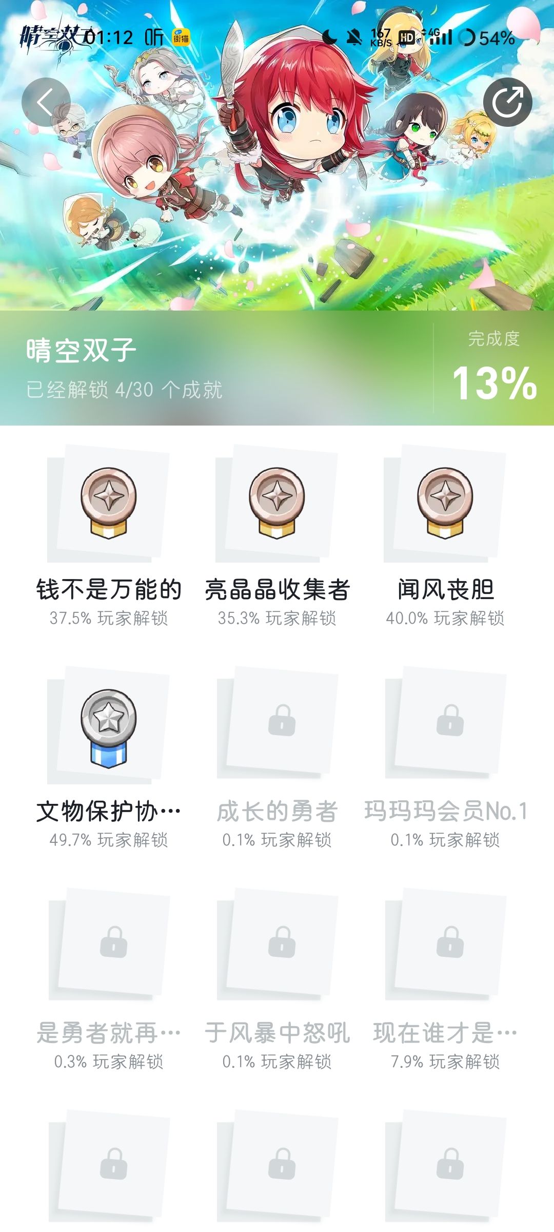 还有还有一个游戏我不确定到底有没有我自己去玩了,他在Tap上显示是有成就的,但是我通关之后我发现,我应该获得的成就我没有获得,不知道是不是版本的问题,或许后期会优化这个问题的,这个游戏最终应该还是会有成就系统的,图中是我收集到其他玩家的成就图片