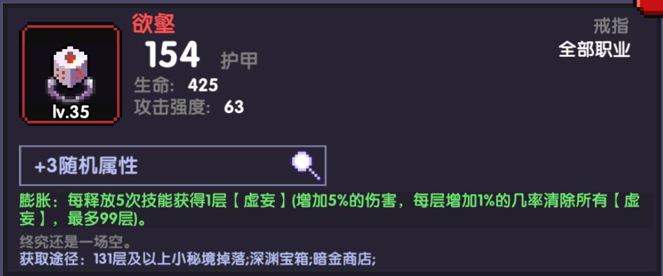膨胀:每释放5次技能获得1层【虚妄】(增加5%的伤害,每层增加1%的几率清除所有【虚妄】,最多99层),须佐的技能释放频率十分快,赌狗戒指是不二之选