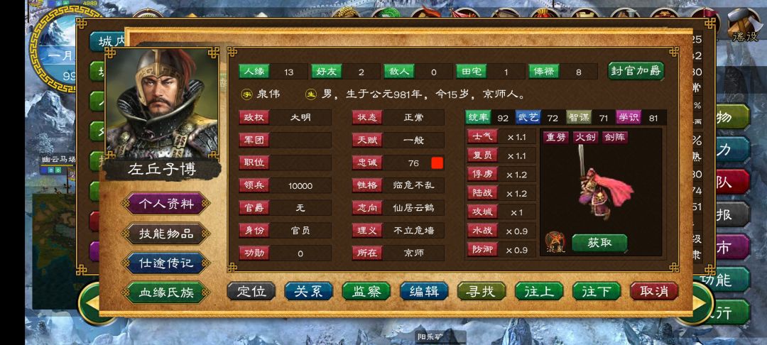 3. 选拔武将一定要在中原城市,这样选拔出来的武将才有几率带皮肤。城市科技研发越高,选拔的武将能力属性越强。再配上宝物,强的一批