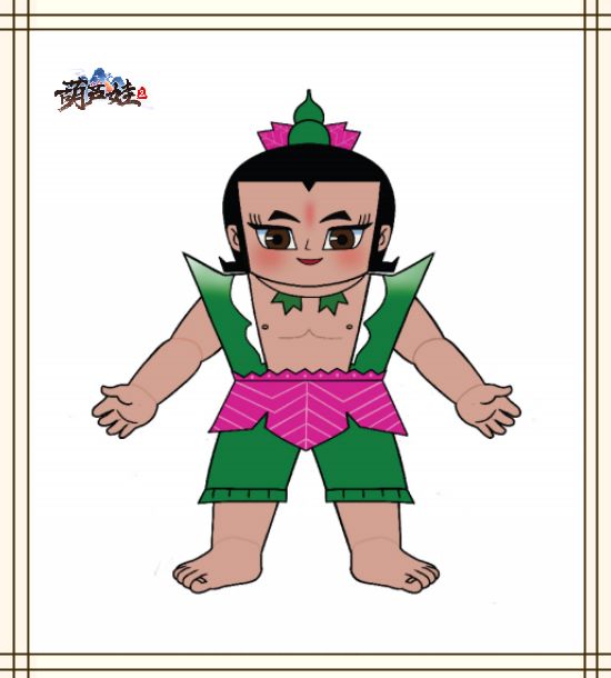 眼睛外方内圆,符合中国传统浓眉大眼的正气造型,瞳孔迥然但又不失孩童的纯真。鼻子运用简洁的单线清晰明确的表示。嘴巴用向上的半圆表示,蕴含笑意,表情友善。耳朵轮廓圆润,内侧用两条简洁的线条勾勒出耳部结构。眉毛是富有阳刚气息的浓眉,眉峰挺拔。