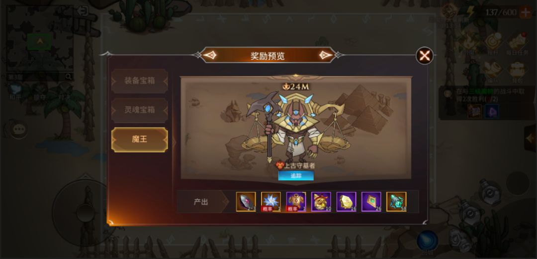 4- 精英模式<ICON图标>,点击进入可查看各精英魔物的战力、外观、以及击杀后的奖励掉落情况。