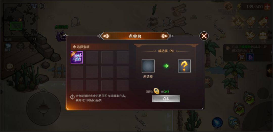 点金台:与其对话将开启宝箱点金界面,可消耗“点金石”对迷雾森林中拾取的宝箱进行点金操作,从而获得对自己最有益的宝箱。
