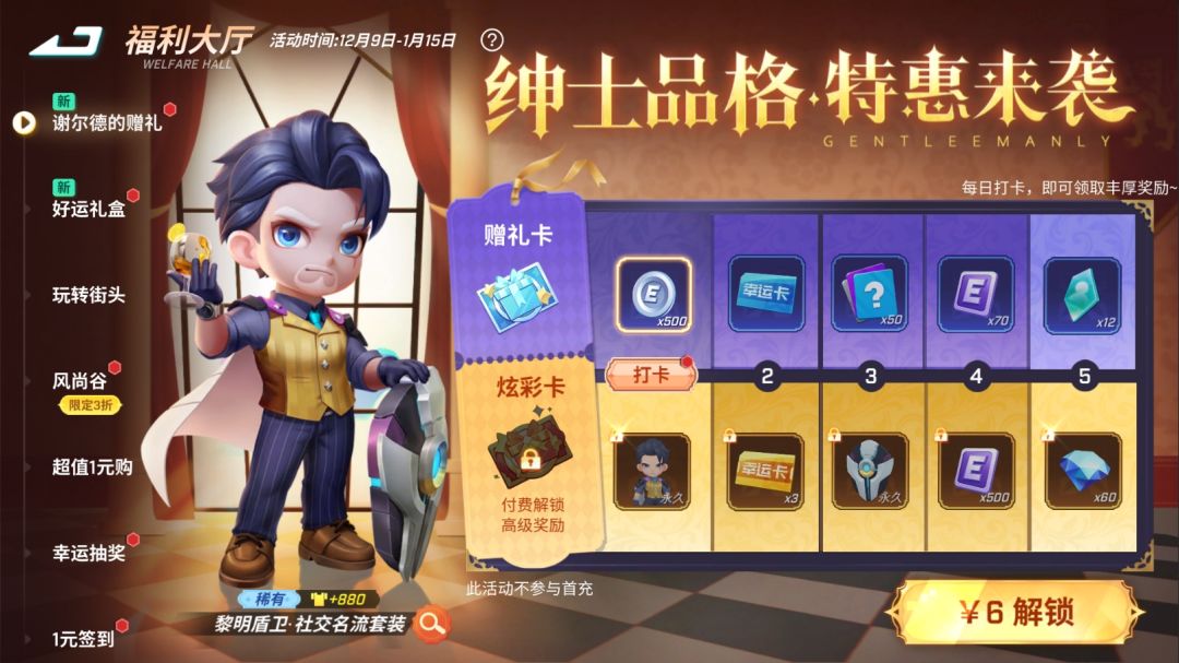 解锁后首日即得黎明盾卫·社交名流套装,第5天还有60钻石等你来领!