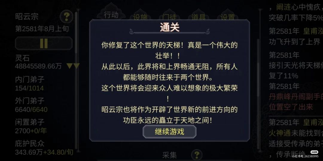 游戏目标:建立门派后飞升十人、完成修复天梯