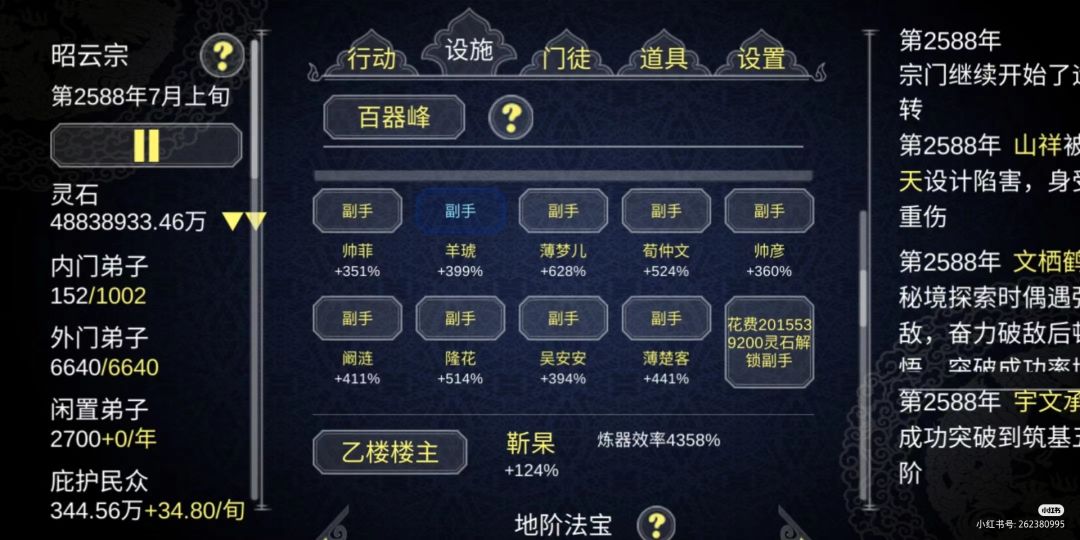 【效率没有堆到2000%之前没啥效果,还需要掌门手动炼制。之后交给弟子,不用操心了】